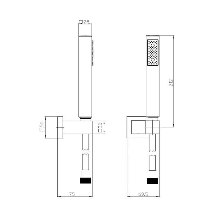 Bossini Cube Ручной душ с поворотным держателем и шлангом 150см., цвет: черный матовый