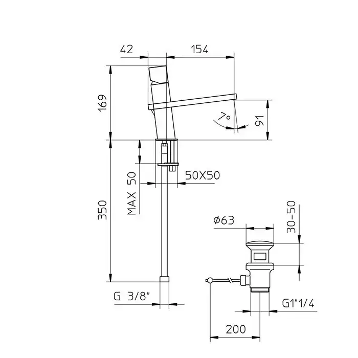 Bossini Cube Смеситель для раковины, на 1 отв., c заглушкой 1"1/4, цвет: хром