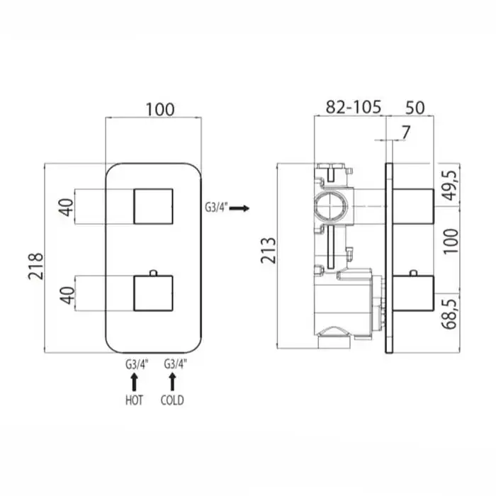 Bossini Встр. часть термостата с запорным клапаном,1 выход, высокой пропускной способности на ¾", уст-ка верт/гор.