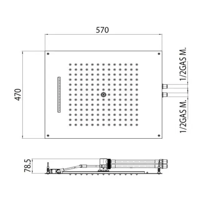 BOSSINI DREAM-RECTANGULAR Верхний душ 570x470 мм, с 12 LED RGB, блок питания/управления, Cromoterapia, цвет: хром