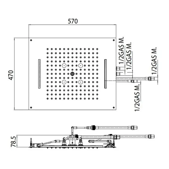 BOSSINI DREAM/3 Верхний душ 570 x 470 mm, 3 режима (дождь, каскад, туман), с 4 LED RGB, блок питания/управления, Cromoterapia, цвет: хром