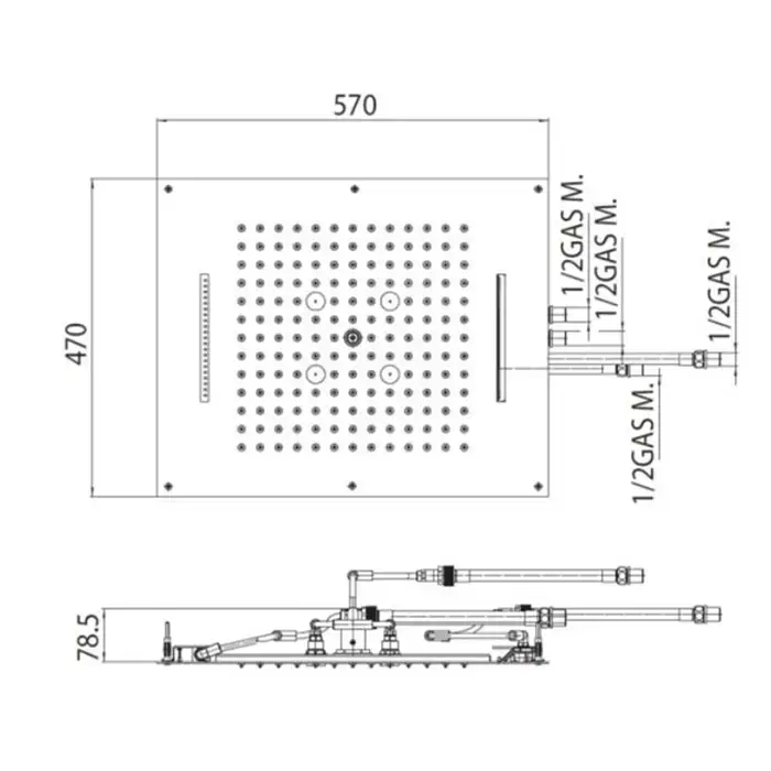 BOSSINI DREAM-CUBE Верхний душ 470 x 470 мм, с 8 LED RGB, блок питания/управления, Cromoterapia, гибкая подводка, цвет: хром