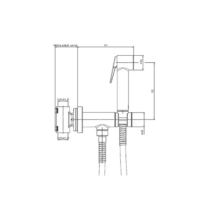 Bossini Paloma Flat Гигиенический душ с прогрессивным смесителем, лейка пластиковая, шланг Cromolux, цвет: хром