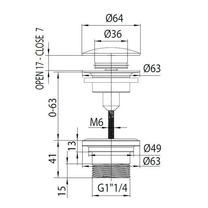 Bossini Gillo Донный клапан для раковины, клик-клак, 1" 1/4, цвет: хром