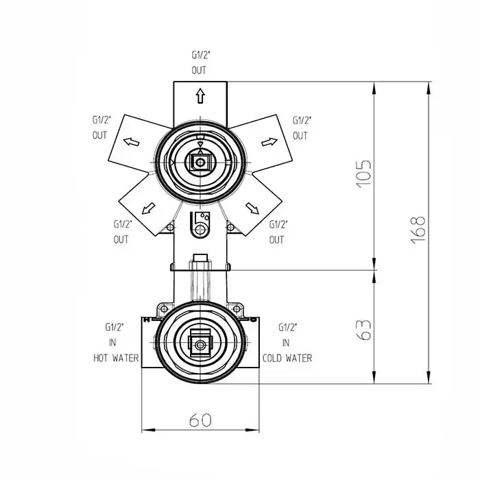 Bossini Liberty Смеситель для душа, встраиваемый, с девиаторм 1/2/3/4/5, цвет: хром