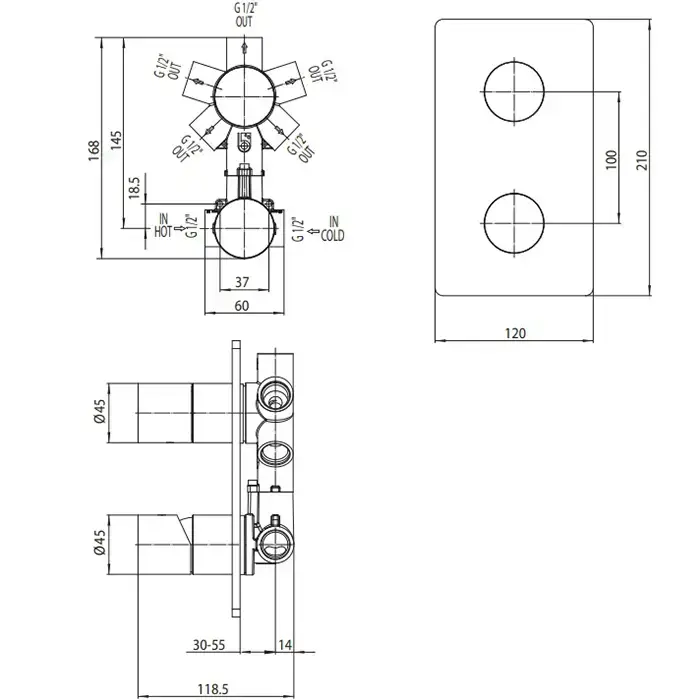 Bossini Liberty Смеситель для душа, встраиваемый (внешняя часть), с девиаторм 1/2/3/4/5, цвет: Brushed bronze matt