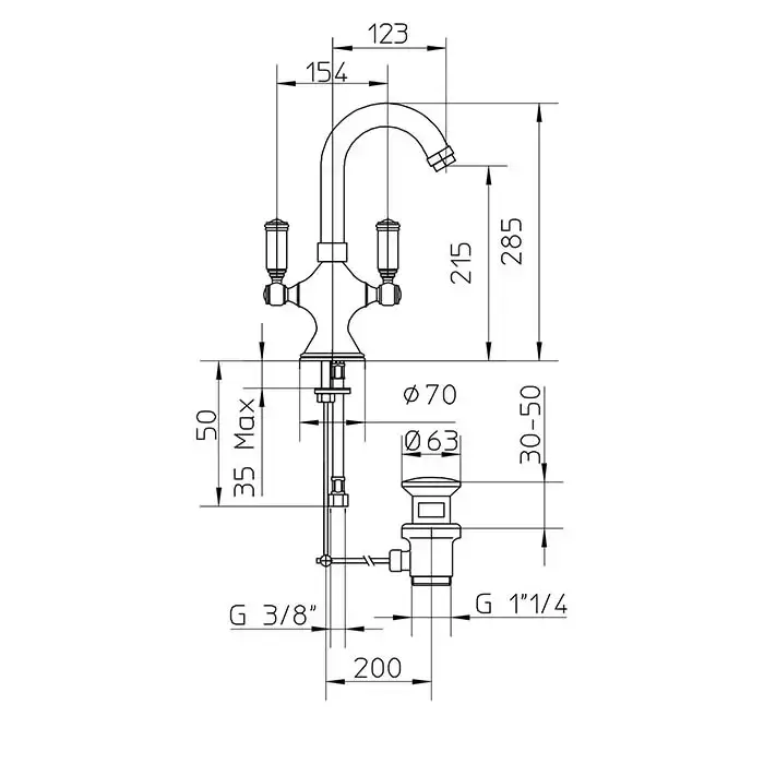 Bossini Liberty Смеситель для раковины на 1 отв., с поворотным изливом и заглушкой 1"1/4, цвет: золото