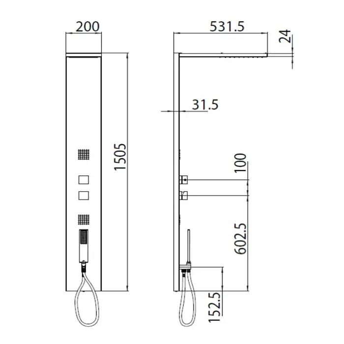 Bossini Manhattan Душевая панель из нерж/стали 200хh1500/вылет 532 мм, с 4мя функциями, смеситель монокомандный, цвет: хром (СПЕЦЦЕНА!)