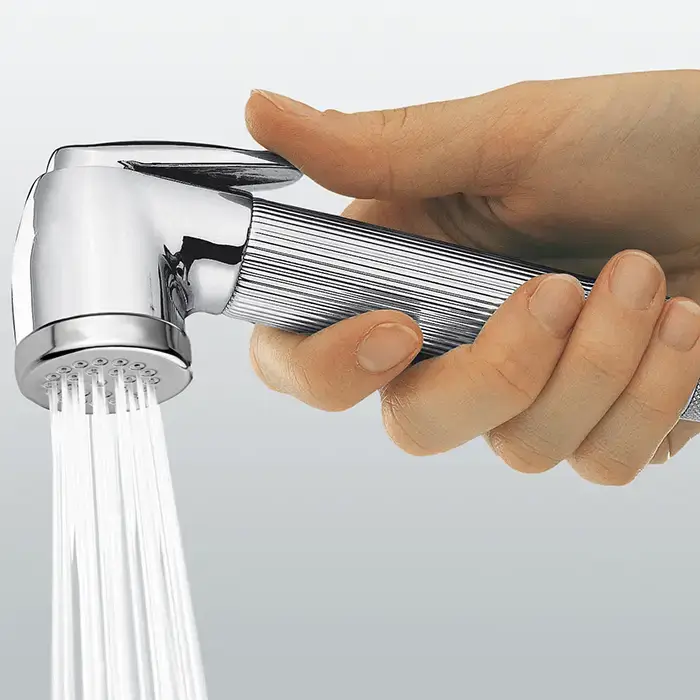 Bossini Cube Brass Гигиенический душ с прогрессивным смесителем, лейка металлическая, шланг металлический, цвет: хром