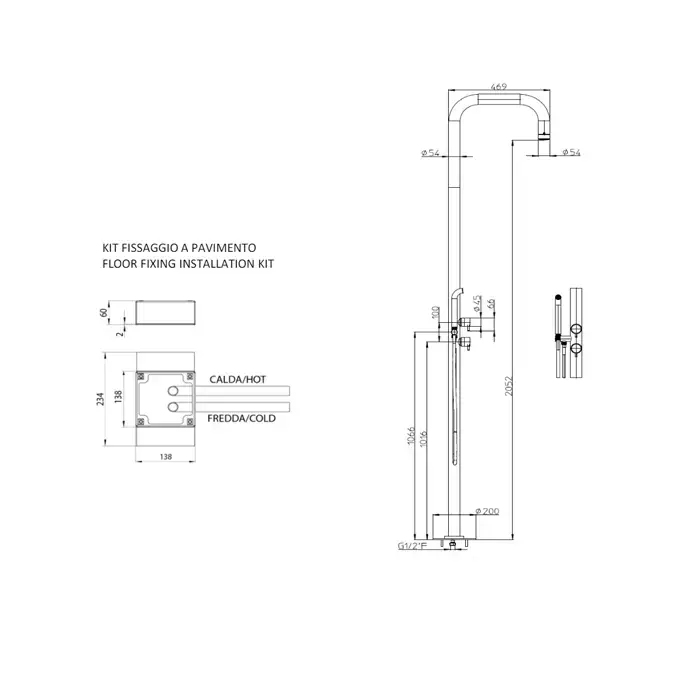 Bossini Nobu Душевая колонна для наружной установки, из стали с .2 прогрес. смесителя - Душ 54 мм , ручной душ с держ.- цвет: нержавеющая сталь