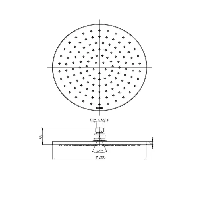 Bossini Nobu Душевая лейка из нерж. стали Ø 280 мм самоочищающаяся на шарнире на 1/2" F.., цвет: нержавеющая сталь