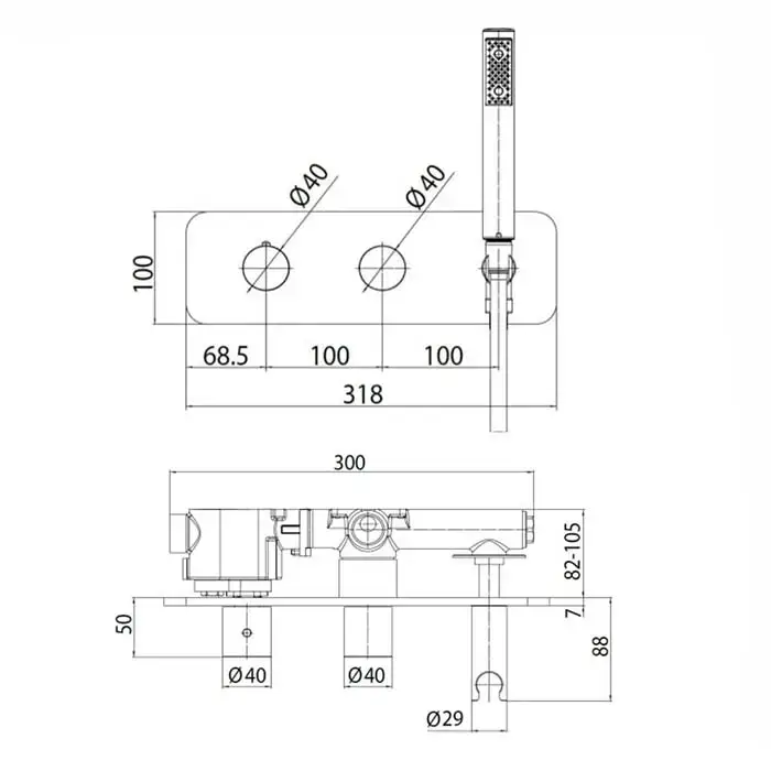 Bossini Oki Термостат высокой пропускной способности с девиатором на 2 выхода, ручной душ ZEN и шланг, цвет: хром