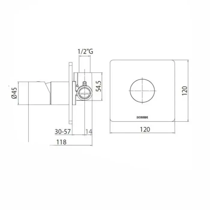 Bossini Oki Смеситель для душа на 1 выход (внешняя часть -настенная накладка, ручка и кнопка круглой формы), цвет: хром