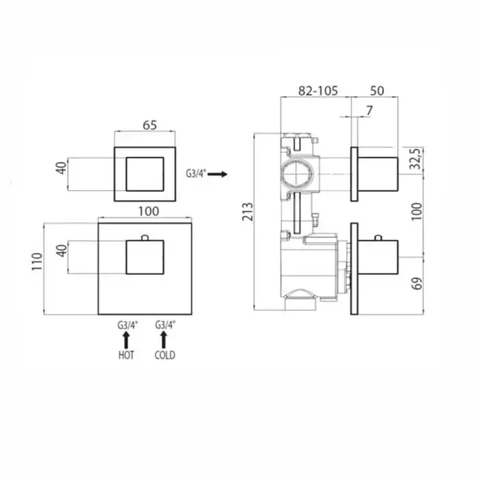 QuadroDesign Универсальная IN050 Встраиваемая часть смесителя термостатического из стены с 3-мя запорными вентилями