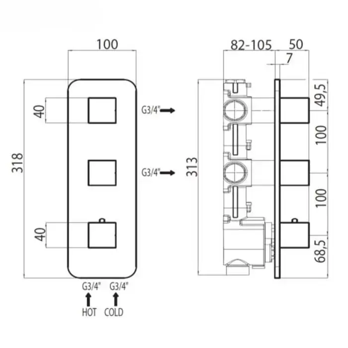 QuadroDesign Универсальная IN050 Встраиваемая часть смесителя термостатического из стены с 3-мя запорными вентилями
