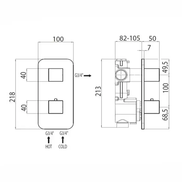 QuadroDesign Универсальная IN050 Встраиваемая часть смесителя термостатического из стены с 3-мя запорными вентилями