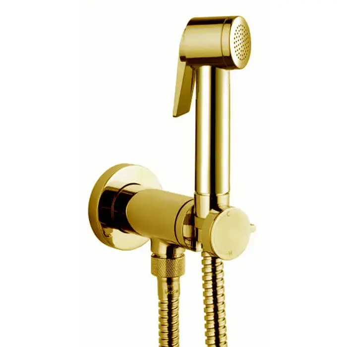 Bossini Paloma Flat Комплект гигиенический: прогрессивный смеситель,лейка с клапаном подачи воды, шланг 1250 мм, цвет: Gold PVD