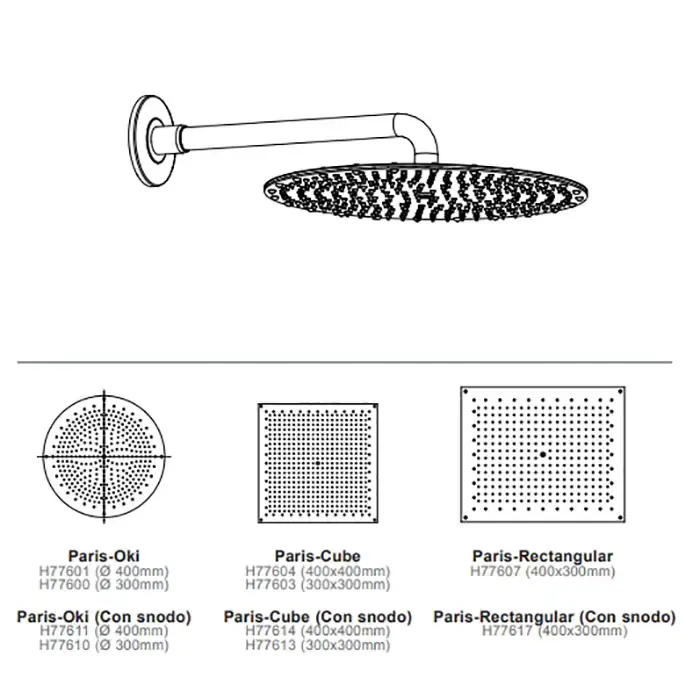 BOSSINI PARIS-OKI Верхний душ Ø 400 мм, настенный кронштейн Ø 28 x 400 мм, цвет: хром