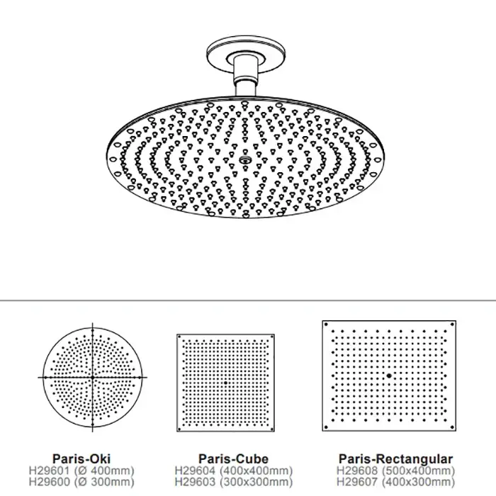 BOSSINI PARIS-RECTANGULAR Верхний душ 500 x 400 mm - потолочный кронштейн 150 mm, цвет: хром