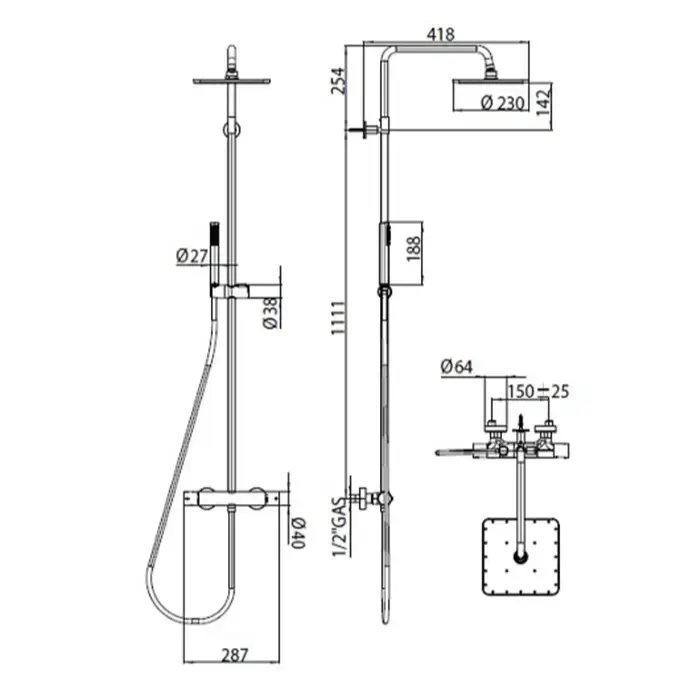 Bossini Tetis Душевая система: верхний душ Ø25см., ручной душ и шланг 150см., цвет: хром