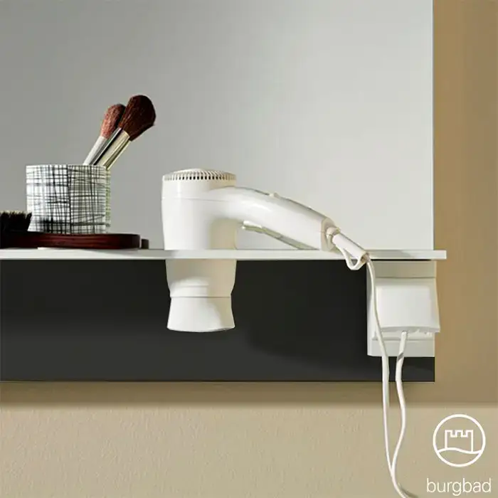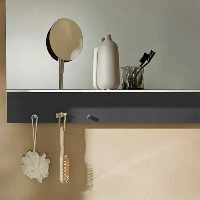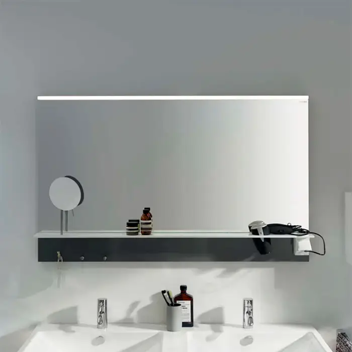 BURGBAD Eqio Зеркало с полкой , светодиод подсв.120х76.9х15см,выкл сбоку справа, 3 крючка, держ для фена справа. цвет серый F2010