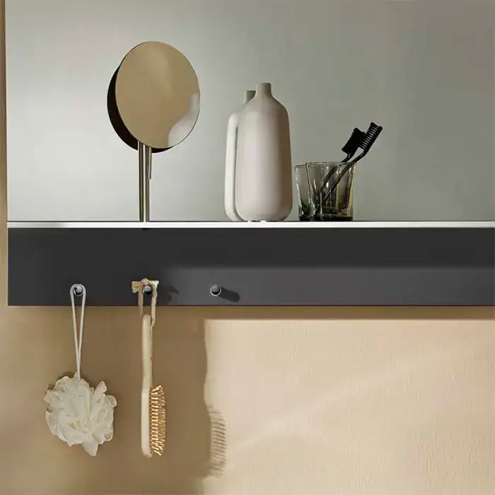 BURGBAD Eqio Зеркало с полкой , светодиод подсв.90х76.9х15см,выкл сбоку справа, 3 крючка, держ для фена справа. цвет серый F2010