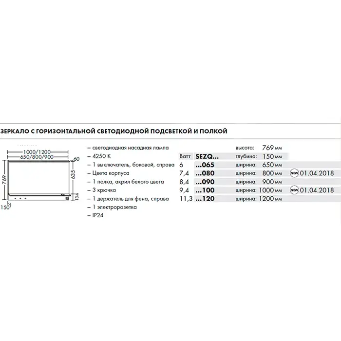 BURGBAD Eqio Зеркало с полкой , светодиод подсв.900х769х150 мм,выкл сбоку справа, 3 крючка, держ для фена справа. цвет серый F2010 (спЦЕНА со склада!)