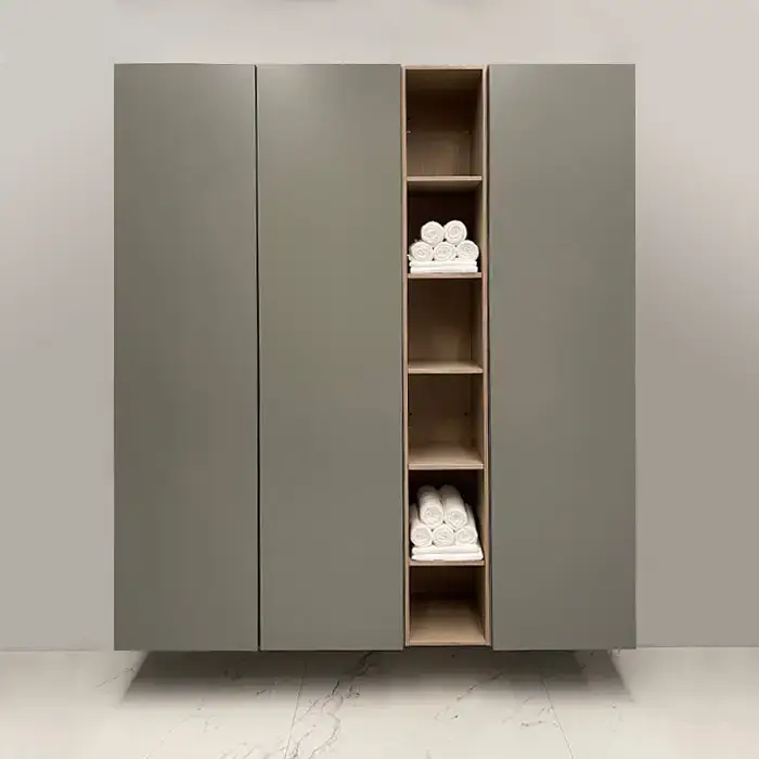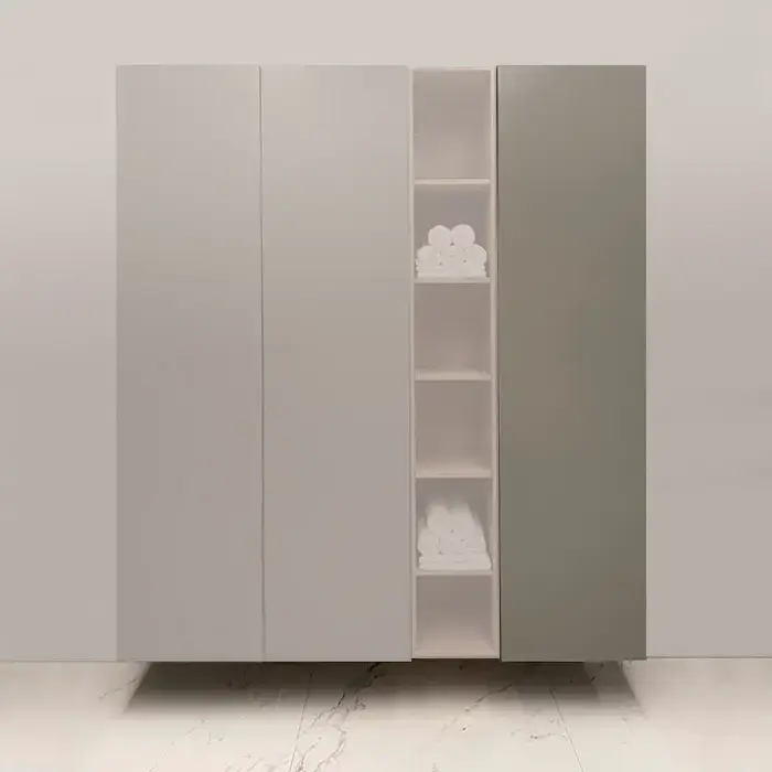 Burgbad Пенал подвесн 500хh1960х378 мм, RX, петли справа, с дверцой push-open, 4мя стеклян полками (отделка со всех сторон), цвет:Grey matt(СПЕЦцена!)