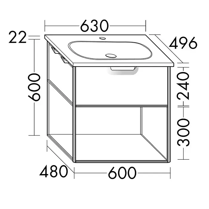 BURGBAD VRY Комплект мебели 630х496х600 мм, подвесной, 1 ящик, 1 полка, раков белая глянц с 1 отв для смес, ручка G0253, цвет белый матовый