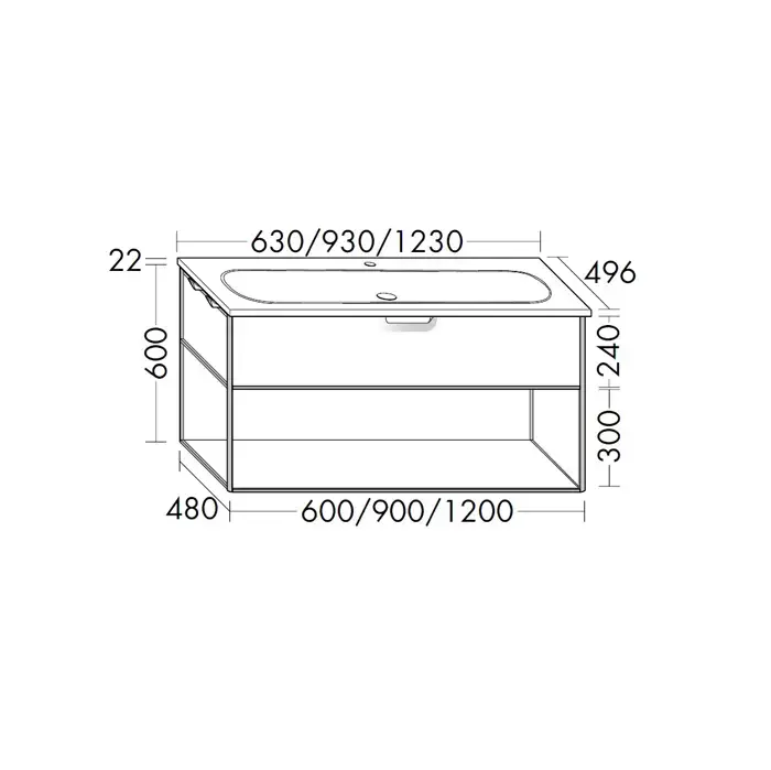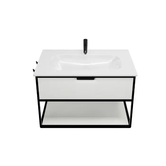 BURGBAD VRY Комплект мебели 930х496х600 мм, подвесной, 1 ящик, 1 полка, раков белая глянц с 1 отв для смес, ручка G0253, цвет белый матовый