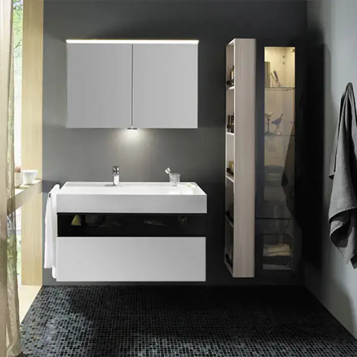Burgbad Yumo База 101.5х64х47см.с умыв из мин литья с 1 отв под смес,2 выдв ящика с ручкой Мокка G0179.верхн ящик из дымч стекла, подвесная, цвет: белый глянц.