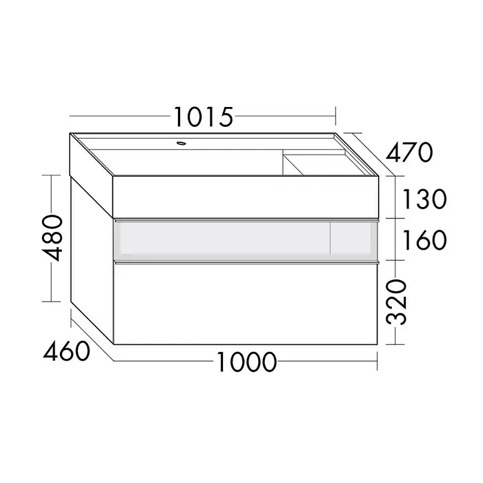 Burgbad Yumo База с умыв с 1 отв. 1015х470х480 мм. 2 выдв ящика, аллюм рамка,вставка из дымч стекла, подсветка, цвет F3193 белый глянц