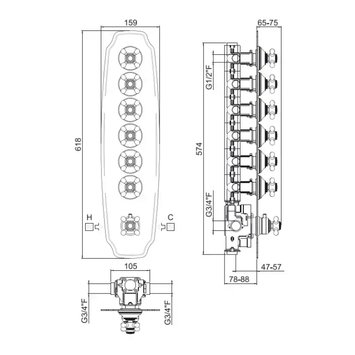 Carimali COLONIAL Внешняя часть вертикальная для термостатического смесителя с 6-ю независимыми выходами, цвет хром