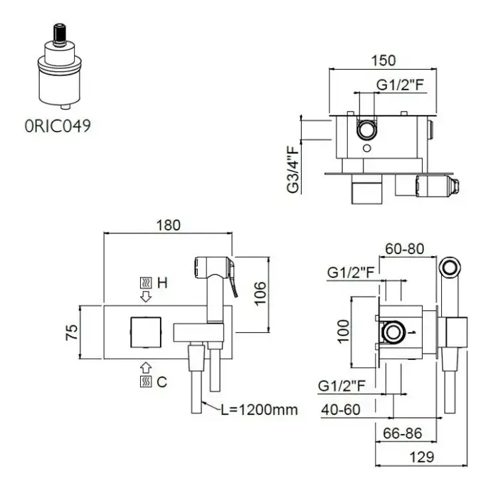 CARIMALI MINI 1 Комплект встраиваемый смеситель с гигиеническим душем, хром