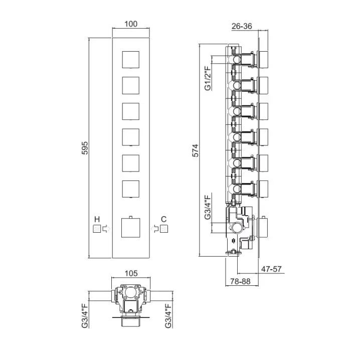Carimali ILQUADRO Внешняя часть вертикальная для термостатического смесителя с 6-ю независимыми выходами, цвет хром