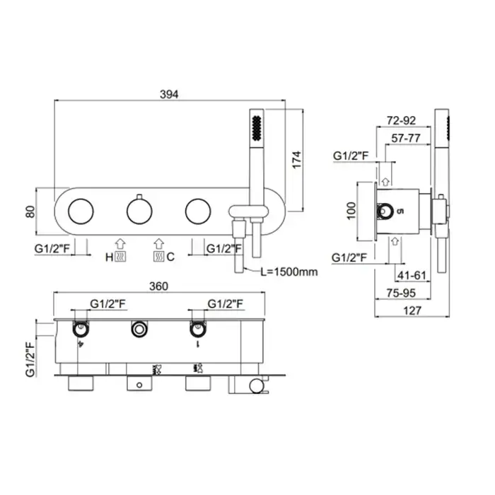 Carimali ILTONDO Внешняя часть Скрытый горизонтальный смеситель c держателем длядуша держателем, 5 выходов. хром