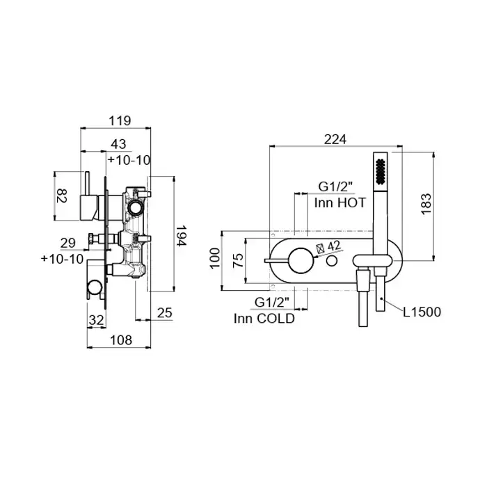 Carimali ilTondo Смеситель для душа, встраиваемый, термостатический, c держателем для ручного душа, 2 выхода, гибкий шланг, цвет: хром