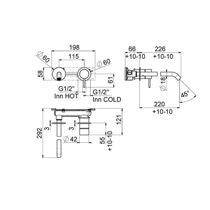 Carimali IL TONDO Смеситель со стены для раковины, традиционный картридж,цвет хром (внешняя часть)