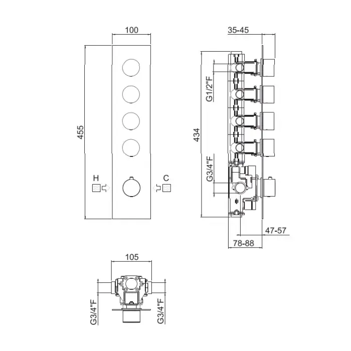 Carimali ILTONDO Внешняя часть вертикальная для термостатического смесителя с 4 независимыми выходами, цвет хром