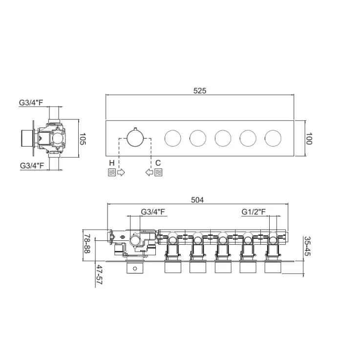 Carimali ilTondo Смеситель для душа, встраиваемый выхода, гибкий шланг, термостат c держателем для ручного душа, 6 выходов, цвет: хром