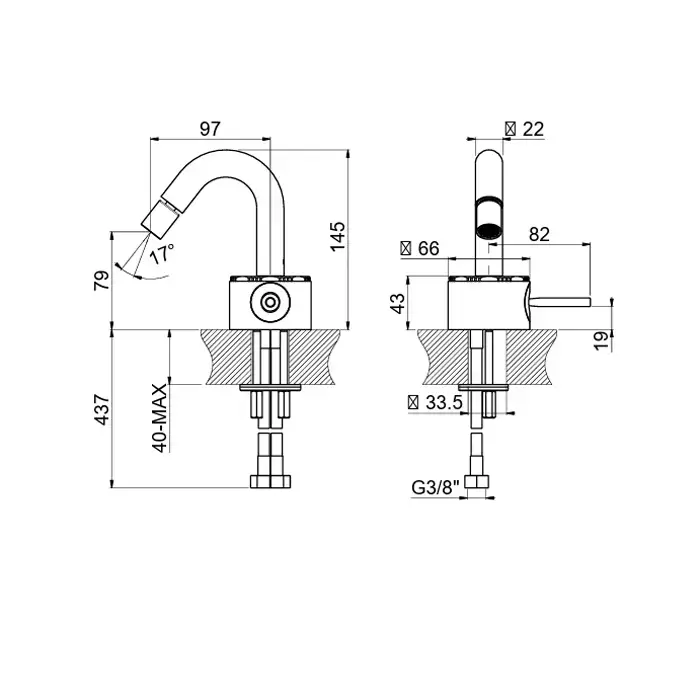 CARIMALI STILL OH Смеситель для биде с одним отверстием, r[6]cобычный картридж, межосевое растояние мм 97, без слива, хром
