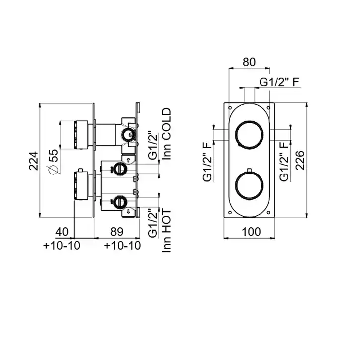 Carimali Still Oh Смеситель для душа, встраиваемый, термостатический, на 2 выхода, цвет: хром