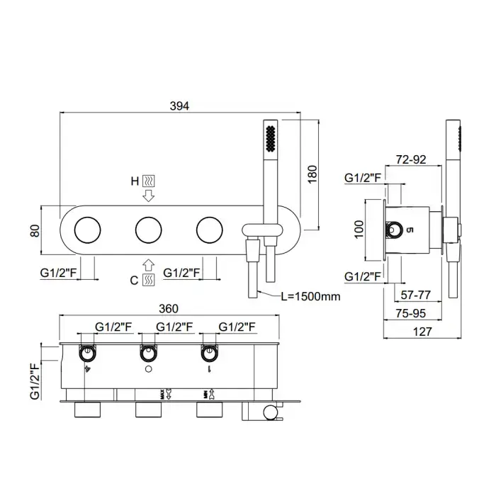 Carimali Встраиваемая часть для горизонтального прогресивного смесителя c держателем для душа, 5 выходов,.цвет: хром