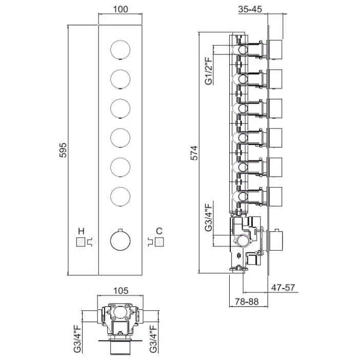 CARIMALI Встраиваемая часть для термостатического смесителя с 6 независимыми выходами