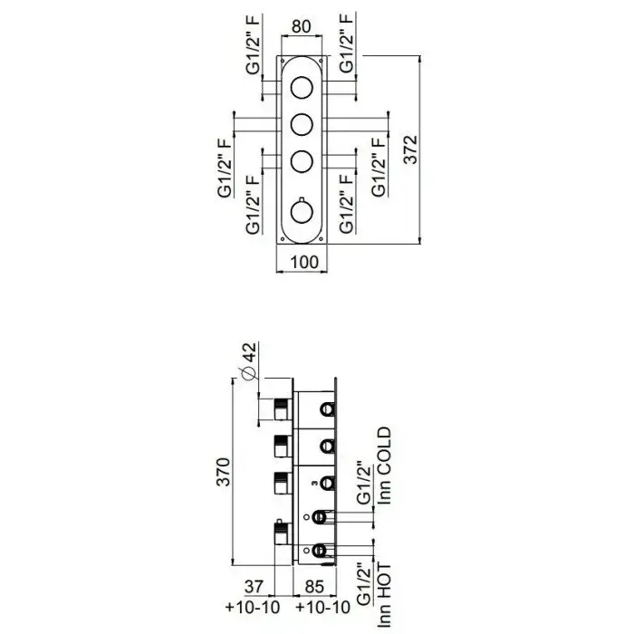 Carimali Встраиваемая часть термостатического смесителя на 3 параллельных выхода