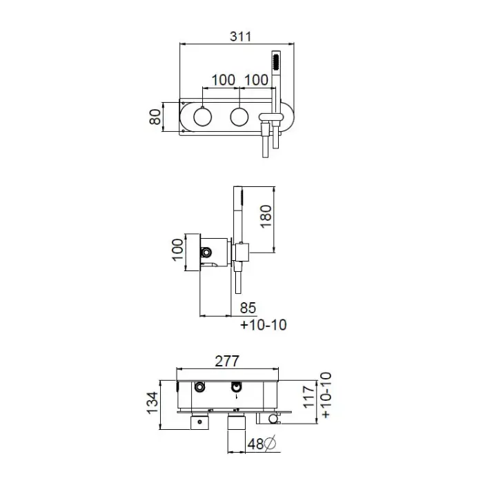 Carimali Встраиваемая часть термостатического смесителя на 3 положения