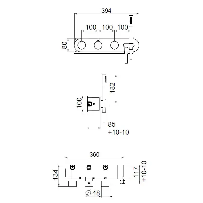 QuadroDesign Универсальная IN050 Встраиваемая часть смесителя термостатического из стены с 3-мя запорными вентилями