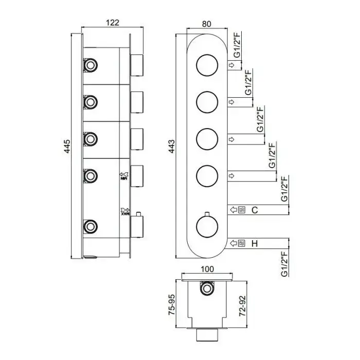 Carimali Встраиваемая часть для термостатического смесителя 4 выхода G 1/2’’, установка вертикальная