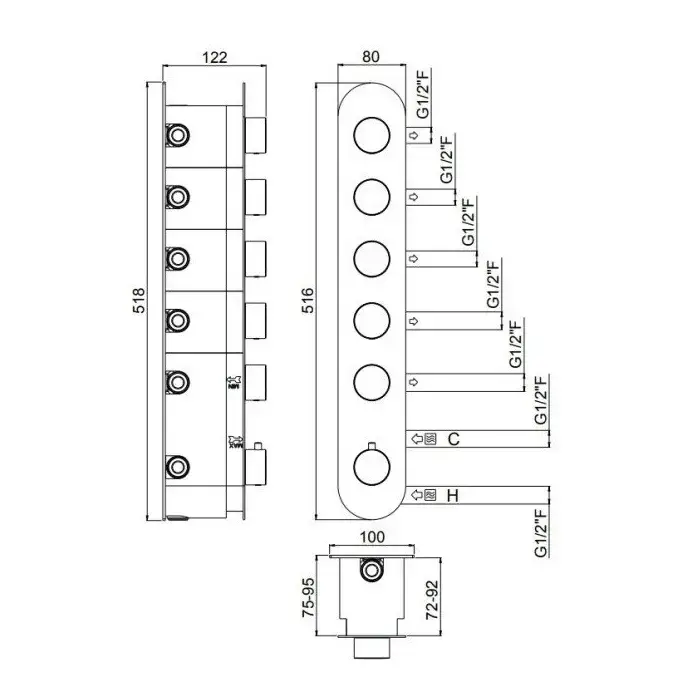 Carimali Встраиваемая часть термостатического смесителя на 5 выходов