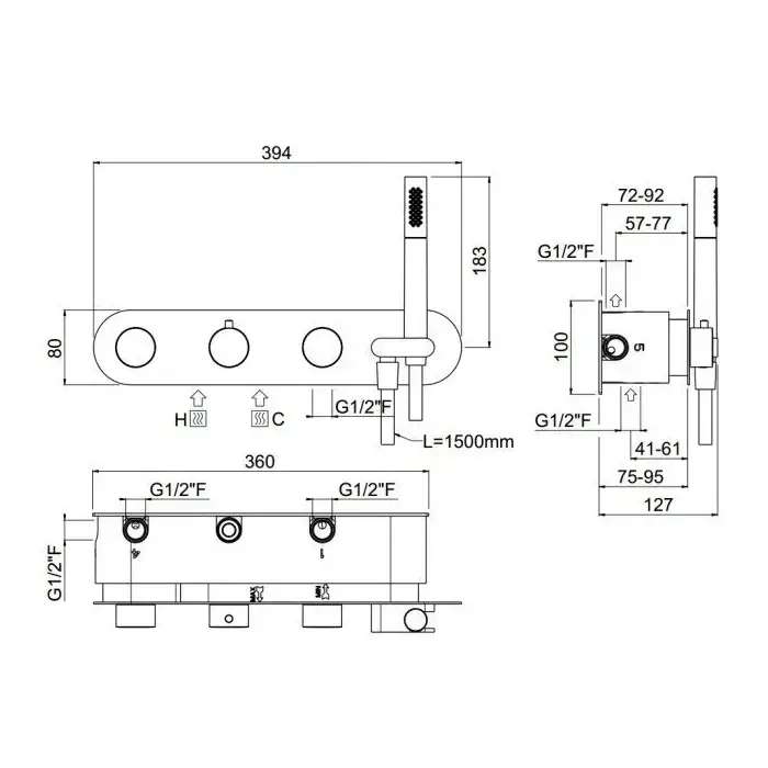 Carimali Встраиваемая часть для горизонтального термостатического смесителя c держателем, 5 выходов,.цвет: хром (Снято с пр-ва)